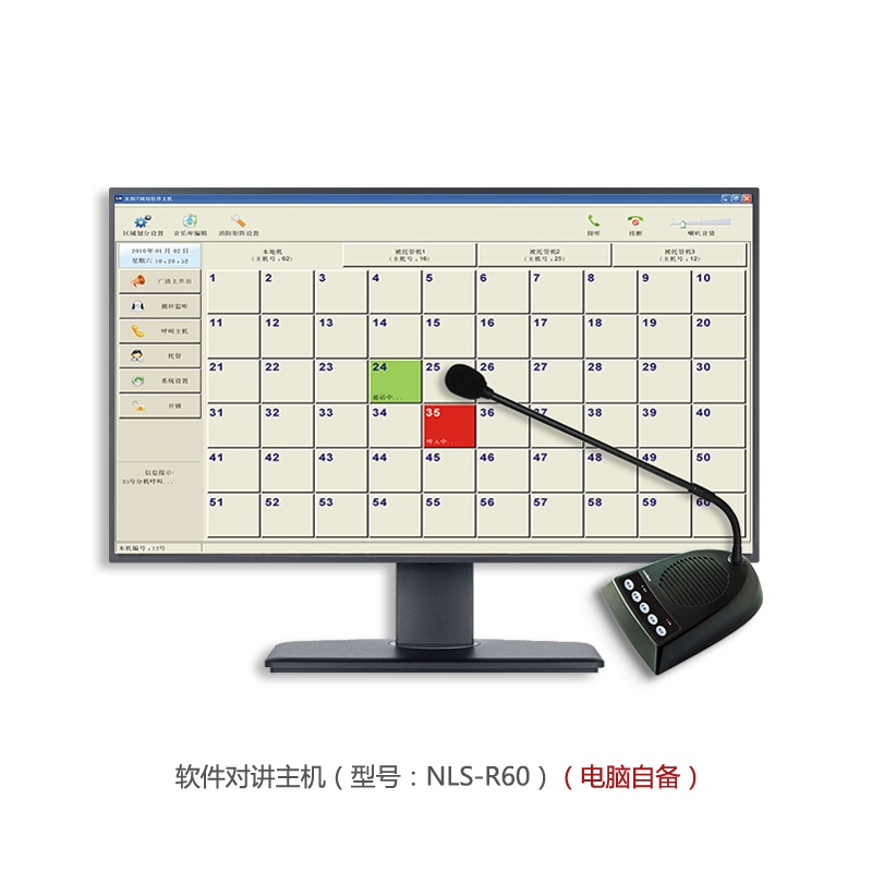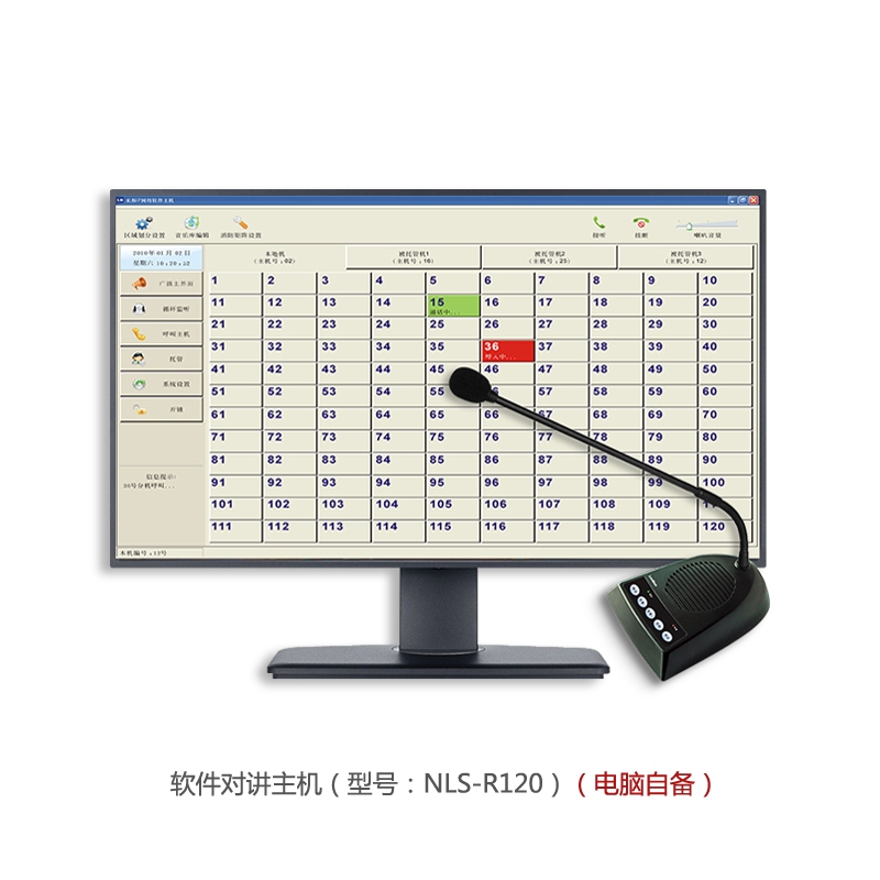 對講器組成,安裝于電腦(電腦自備)。30路/60路/90路/120路軟件主機,可作一級管理主機使用;300路/600路/10000路主機,可作高級別管理主機使用。也可放置在廣播室。
