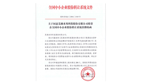 2.正式掛牌“新三板”,證券代碼:836888,證券簡(jiǎn)稱:來(lái)邦科技;