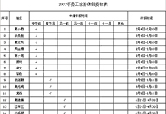 公司福利制度第十二條:在公司工作滿兩年以上的員工,每隔兩年可向公司申請最多6個工作日的有薪旅游假期,并給予2000元的假期補貼。根據以上規定,需要申請2007年年休假的員工須填寫《2007年員工休假申請表...