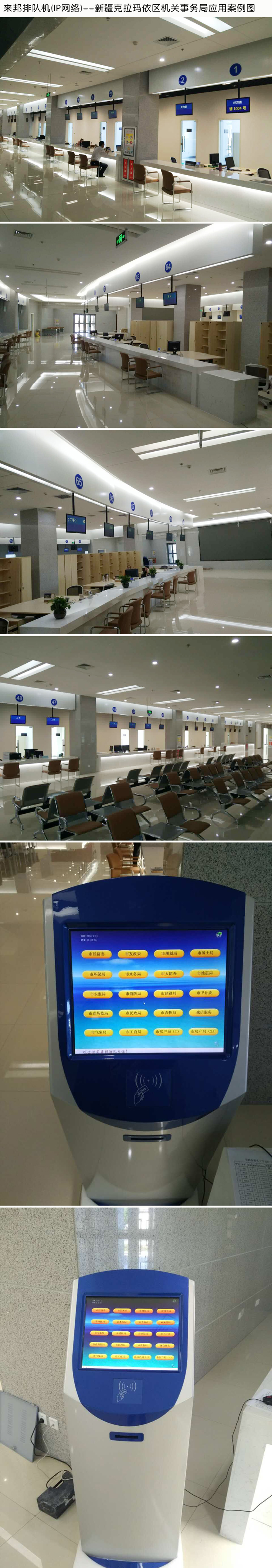 新疆克拉瑪依區機關事務局的啟用,是服務舉措的重大創新,是發展里程的新亮點。為確保優質高效運轉,提升服務水平,要求各窗口單位實行電子叫號系統,配置雙顯示器,增設一人一評價叫號器,以進一步優化業務流程,縮短辦理時限,提高辦事效率。項目建設期間,啟動了“智能化排隊叫號系統工程”公開招標活動,來邦成功擊敗其它參與投標品牌并順利中標。