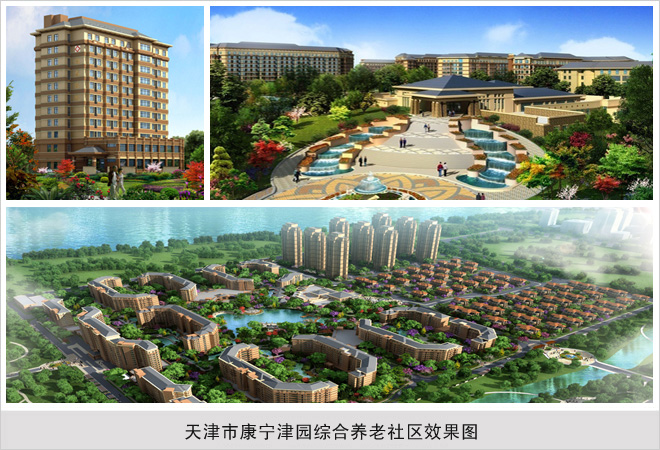 據悉,全國規模最大的“天津市康寧津園養老社區”即將落成,預計2015年年底投入使用,首批對外開放690套老年公寓,未來將形成