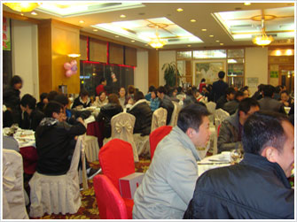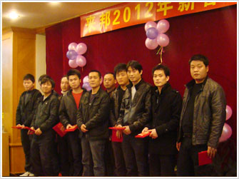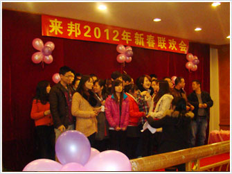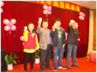 聯(lián)歡會上,首先由公司總經(jīng)理潘曉亭致詞,先是對公司2011年總體工作做了總結(jié)報告,并回顧了過去一年來的辛勤工作以及取得的良好業(yè)績,同時也為大家描繪了公司在新的一年里美好規(guī)劃藍圖。之后,公司領(lǐng)導(dǎo)為大家送上了節(jié)日的問候。周振華廠長為表現(xiàn)突出的生產(chǎn)部員工頒發(fā)了優(yōu)秀員工獎(共10名)、勤奮獎(共6名)、全勤獎(共3名)。現(xiàn)場氣氛更是熱烈,同時也擺上了晚宴,最讓人期待的更是抽獎環(huán)節(jié)。大家在聽到總經(jīng)理宣布抽獎時,現(xiàn)場氣氛更是一度高漲,一些員工更是壓抑不住自己的激動心情,一片歡呼。隨后大家按照規(guī)則每人抽取一張牌,最后由總經(jīng)理宣布三等獎(共24名)、二等獎(共8名)、一等獎(共4名),并頒發(fā)獎金。在接近頒獎尾聲,聯(lián)歡會也漸漸地圓滿的落下了帷幕。