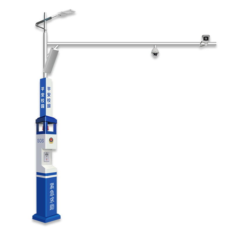 指示牌、攝像頭三角長桿或短桿(網絡攝像機需自備)、路燈支架及防水路燈、防水音柱全套;一般安裝在校園主干通道、操場、花園