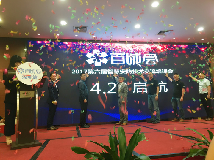 新聞中心4月20日下午,2017年第六屆百城會·智慧安防技術交流培訓會在首站深圳深航國際酒店正式拉開序幕。來自深圳及周邊城市的超過300名集成商、工程商、經銷代理商及行業用戶參加了培訓會,一起相互交流與學習安防行業的發展和變革。深圳市安全防范行業協會副會長、CPS中安傳媒總裁楊鵬,深圳市安全防范行業協會副會長樊超、副會長王達,,CPS中安網總經理楊儒等領導專家,以及活動冠名企業來邦科技常務副總經理王慶出席啟動儀式,共同開啟2017年百城會之旅。