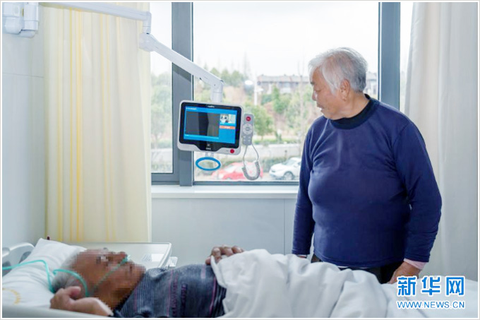 該院通過互聯(lián)網(wǎng)技術(shù)遠(yuǎn)程與上海中山醫(yī)院、浙江嘉善醫(yī)院、江蘇吳江醫(yī)院以及青浦區(qū)域內(nèi)醫(yī)療機(jī)構(gòu)對接,支持長三角生態(tài)綠色一體化發(fā)展示范區(qū)三地居民診療信息的互聯(lián)互通、醫(yī)保免備案異地結(jié)算等。在醫(yī)院的智慧病房中,一名病患家屬使用病床前的來邦智能設(shè)備視頻呼叫醫(yī)護(hù)人員(圖片摘自:新華社記者攝影)。