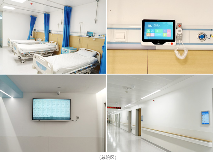 病房門口,具有信息交互顯示的門口機可清晰地顯示患者的基本診療信息、護理等級、責任醫生及責任護士。智能走廊屏,可直觀顯示呼叫患者的病房、床位號,指引護士第一時間前往處理。