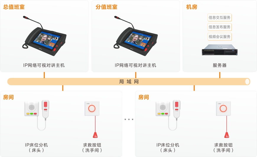 健康驛站隔離酒店對講系統 基于IP網絡架構(可跨網段跨路由),以高清音視頻編解碼技術為核心,集成對講、廣播、信息發布、視頻會議等功能,構建了一套功能完善、擴展性強、實時性高的聯網式音視頻實時交互平臺,主要用于隔離酒店的日常管理和突發事件的指揮處置。