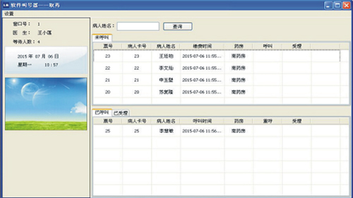 窗口液晶屏顯示:可顯示取藥患者姓名、取藥狀態(tài)、取藥窗口號(或輸液患者的姓名、輸液狀態(tài)、輸液室號)等信息。