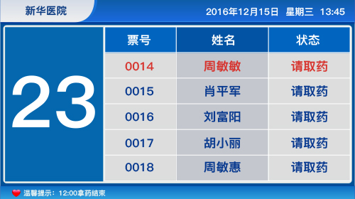 語音報號:可語音播報取藥患者的姓名、相應(yīng)的取藥窗口號。