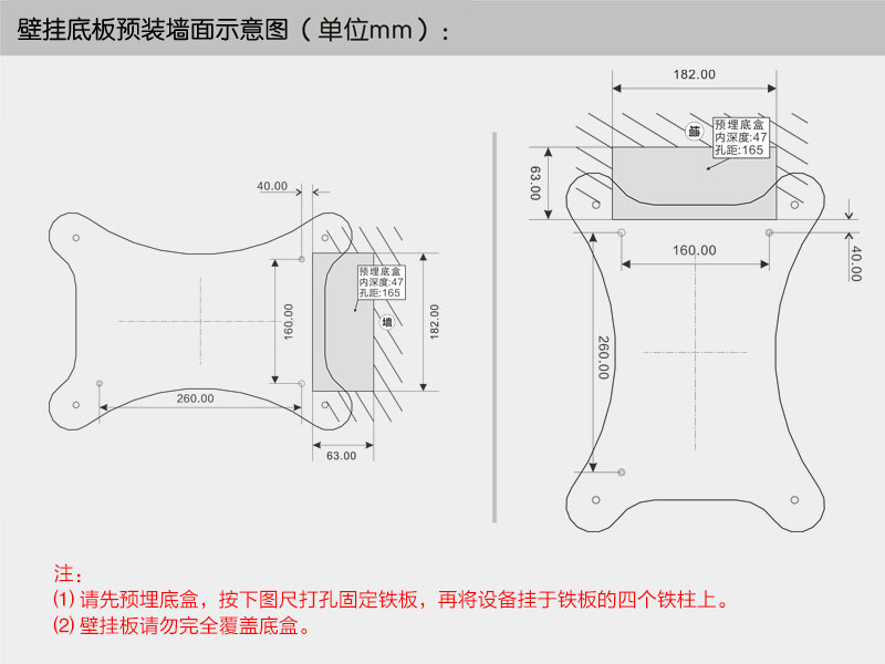 壁掛底板預裝墻面示意圖