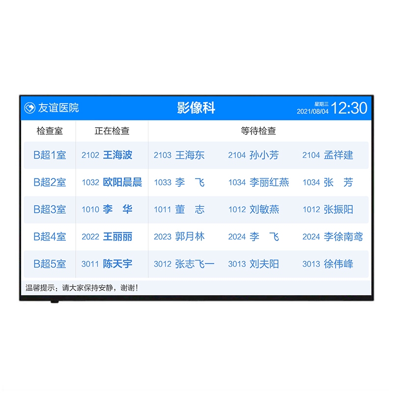 醫(yī)技排隊(duì)叫號(hào)模塊 — 等候區(qū)叫號(hào)顯示屏 —