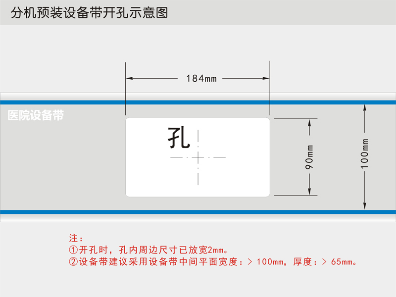 設備帶中間平面寬度:> 100mm,厚度:> 65mm