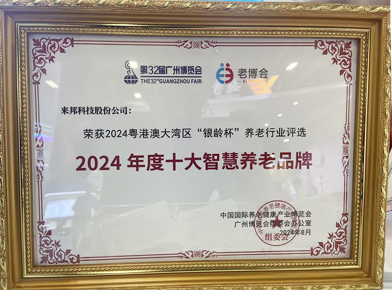 此屆,主辦方同期設置了中國養(yǎng)老掌門人暨粵港澳大灣區(qū)“銀齡杯” 頒獎活動(頒獎典禮將于2024年8月25日如期舉行)。來邦憑借自主核心技術,以及在智慧養(yǎng)老領域的創(chuàng)新和優(yōu)異突出表現等順利入圍,再度蟬聯“2024年度十大智慧養(yǎng)老品牌”和“中國養(yǎng)老掌門人”榮譽稱號!