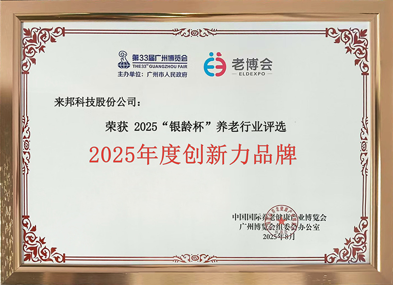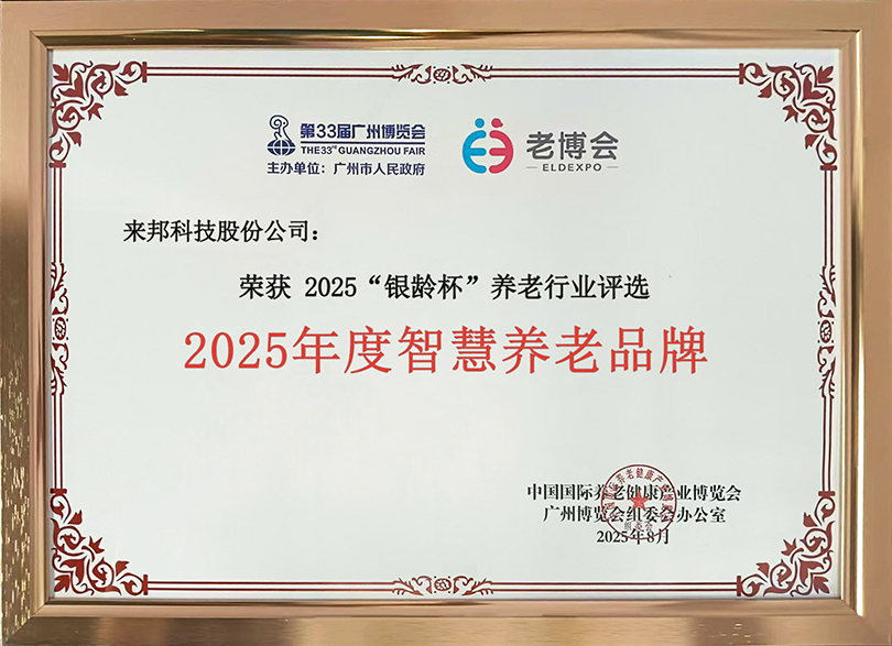 此屆,主辦方同期設置了第五屆“‘銀齡杯’頒獎盛典(頒獎典禮將于2025年8月23日如期舉行)。來邦憑借自主核心技術,以及在智慧養老領域的創新和優異突出表現等順利入圍,再度蟬聯“2025年度智慧養老品牌”和“2025年度創新力品牌”榮譽稱號!